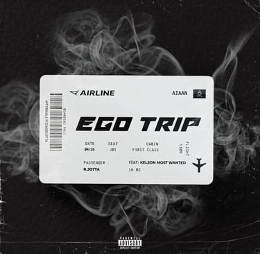Com cerca de 3:20 minutos, “Ego Trip” tem uma batida trap com graves pesados e hi-hats rápidos. As letras falam de ego, confiança excessiva, ostentação e da vida de quem vive no topo, mas também dos perigos que isso traz. R.Jotta entrega o flow principal com atitude, enquanto Kelson Most Wanted entra com versos afiados que complementam bem o tema.